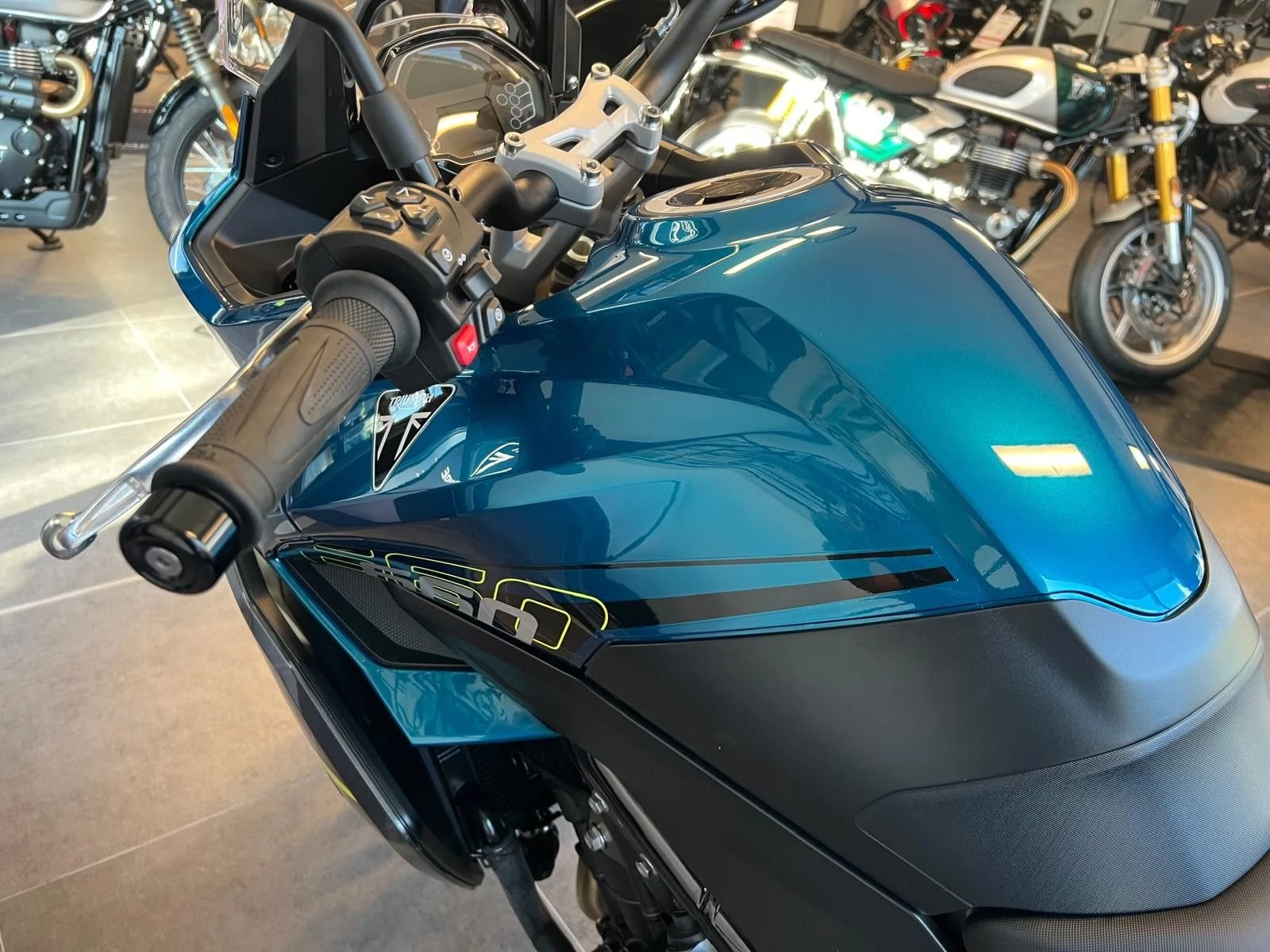 - Triumph Schaltassistent für kupplungsloses Hoch- und Runterschalten.